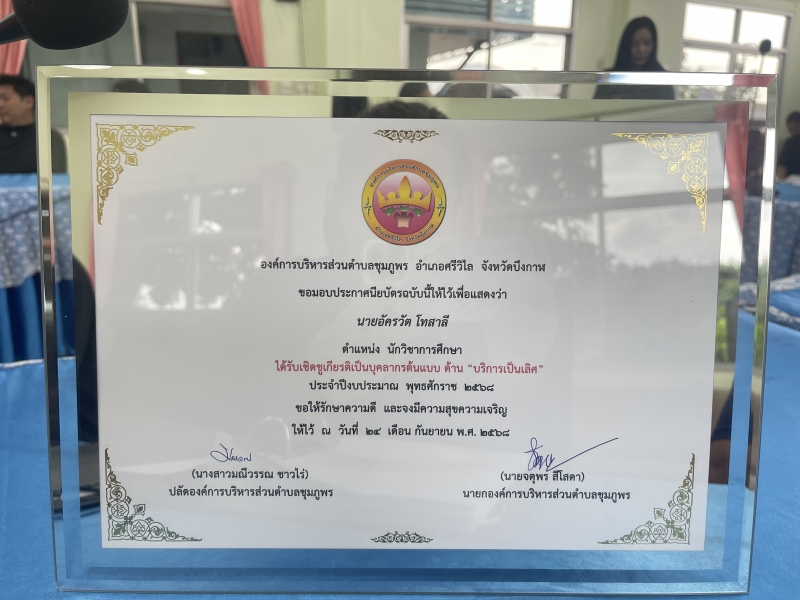 พนักงานส่วนตำบล พนักงานจ้างดีเด่น ผู้มีคุณธรรมและจริยธรรมในการปฏิบัติราชการ ประจำปี ๒๕๖๘